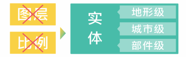 從對現(xiàn)實(shí)世界分尺度表達(dá),轉(zhuǎn)變?yōu)榘础皩?shí)體粒度和空間精度”表達(dá)。