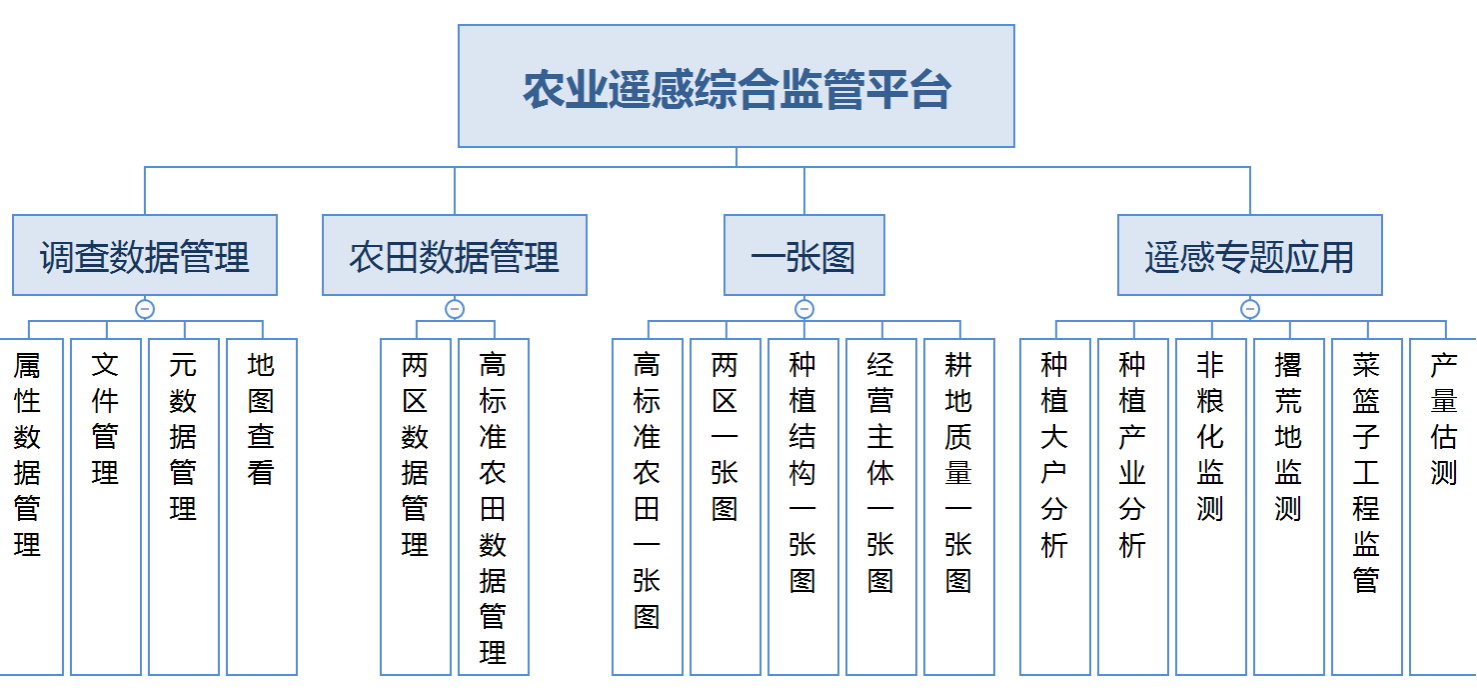 農(nóng)業(yè)遙感綜合監(jiān)管平臺針對兩區(qū)數(shù)據(jù)、高標(biāo)準(zhǔn)農(nóng)田數(shù)據(jù)等,并針對個(gè)種植業(yè)態(tài)、種植大戶等各方業(yè)務(wù),實(shí)現(xiàn)基本農(nóng)田信息的遙感管理、面積統(tǒng)計(jì)、數(shù)據(jù)上報(bào)、信息管理、統(tǒng)計(jì)分析,并同步手機(jī)遙感監(jiān)測APP端方便查詢和上報(bào)和管理。