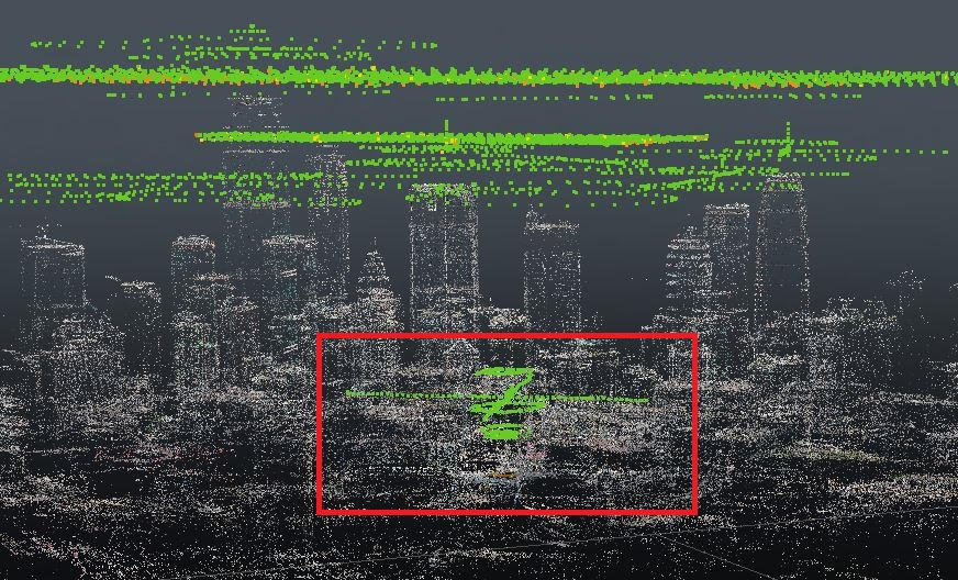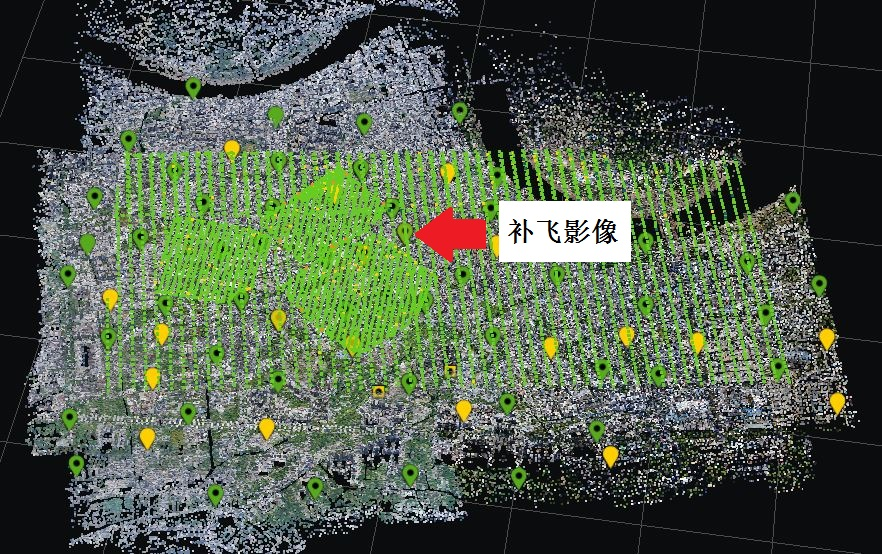 原數(shù)據(jù)空三與補飛數(shù)據(jù)空三可分別進行,可加快項目進程,提升效率。在實景三維重建環(huán)節(jié)將兩部分?jǐn)?shù)據(jù)進行融合,通過生成的點云信息檢查數(shù)據(jù)融合效果。