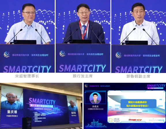 開幕式上,中國測繪學會理事長宋超智、中國遙感委員會主席顧行發(fā)、北京市科學技術(shù)協(xié)會副主席郭魯鋼在大會上發(fā)表了精彩致辭,中國服務(wù)貿(mào)易協(xié)會會長、中國科學院院士周成虎,中國科學院院士童慶禧也通過線上連線對大會的召開表示祝賀。