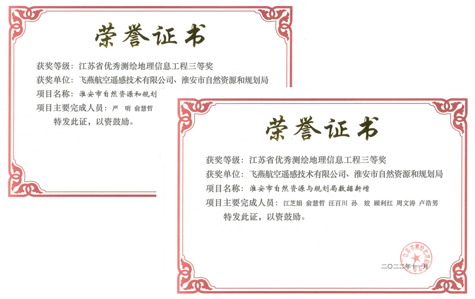 在智慧城市建設(shè)發(fā)展的進(jìn)程中,淮安市自然資源和規(guī)劃局為滿足淮安市1:1000正射影像圖數(shù)據(jù)更新、基礎(chǔ)地理信息數(shù)據(jù)更新,為智慧淮安時(shí)空大數(shù)據(jù)與云平臺(tái)建設(shè)奠定扎實(shí)的空間數(shù)據(jù)基礎(chǔ),在2021年組織了招標(biāo)。飛燕遙感有幸承接了該項(xiàng)目,并在2022年江蘇省優(yōu)秀測繪地理信息工程獎(jiǎng)中獲得三等獎(jiǎng)。