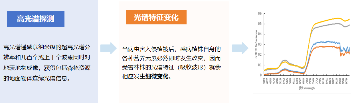 高光譜遙感以其強(qiáng)大的光譜敏感性(納米級(jí)的窄通道)能夠探測(cè)到植被在病蟲害侵害早期與健康植被的細(xì)微光譜差異,為森林病蟲害的早期監(jiān)測(cè)預(yù)警提供了可能。通過AIMS多模態(tài)航攝儀獲取高分辨率的影像數(shù)據(jù)、多光譜數(shù)據(jù)及點(diǎn)云數(shù)據(jù),時(shí)空同步的多源數(shù)據(jù)融合,結(jié)合機(jī)器學(xué)習(xí),利用林業(yè)領(lǐng)域的知識(shí)庫(kù)進(jìn)行訓(xùn)練,可以做到單木級(jí)別的松材線蟲染病樹木的自動(dòng)化提取?;跇颖菊{(diào)查、目視解譯、圖像識(shí)別、機(jī)器學(xué)習(xí)、深度學(xué)習(xí)等方法解決林業(yè)病蟲害方面的需求。