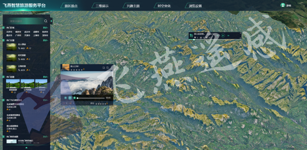 三維智慧旅游平臺,基于景區(qū)實景三維模型和二維地圖,提供景區(qū)場景三維展示、推廣宣傳、資源管理、服務(wù)管理和景區(qū)救援等功能。