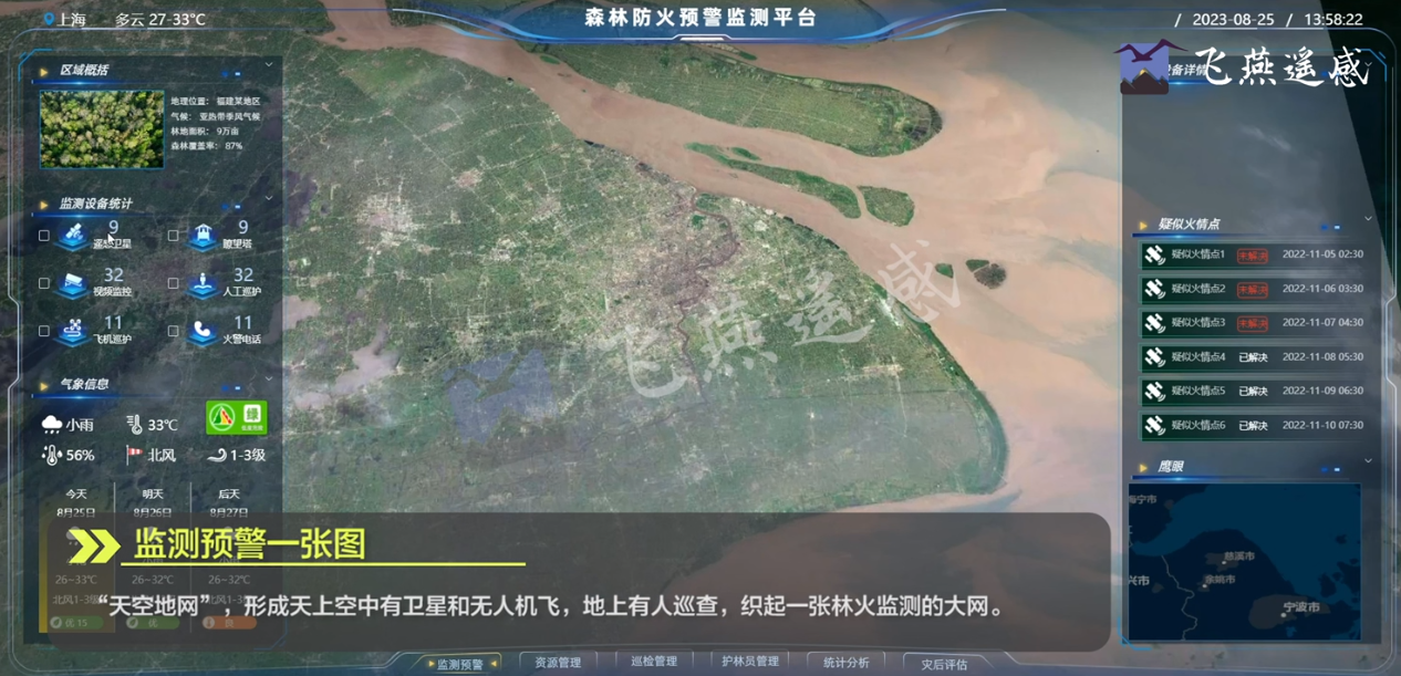 集成遙感技術(shù)、GIS技術(shù)、三維技術(shù)、大數(shù)據(jù)技術(shù)、人工智能等技術(shù),融合多源數(shù)據(jù)(林區(qū)實景三維數(shù)據(jù)、地理信息數(shù)據(jù),“空天地卡人”監(jiān)測數(shù)據(jù),融合基礎(chǔ)資源、森林資源、林業(yè)設(shè)施設(shè)備、林業(yè)物資庫、巡護管護人員等數(shù)據(jù)),實現(xiàn)災(zāi)情自動巡航監(jiān)控、煙火智能識別、火點精確定位、火情分析研判、數(shù)字預(yù)案、輔助決策到災(zāi)后評估等功能。建立起森林防火事前、事中、事后全過程的業(yè)務(wù)鏈,有效提高林區(qū)日常管理效率,提升林區(qū)主管部門對火情監(jiān)測預(yù)警、應(yīng)急調(diào)度等科學(xué)決策能力水平。