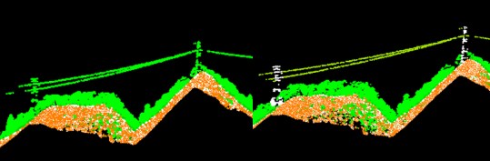 根據(jù)測區(qū)地形測點,設置濾波參數(shù),先濾除噪點、然后航帶重疊區(qū)冗余、最后地面點和地表點分類。
