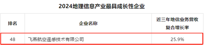 近日,中國地理信息產(chǎn)業(yè)協(xié)會公布2024地理信息產(chǎn)業(yè)最具成長性企業(yè)榜單,飛燕航空遙感技術(shù)有限公司(以下簡稱“飛燕遙感”)憑借卓越的技術(shù)創(chuàng)新能力和強勁的市場表現(xiàn)登榜。