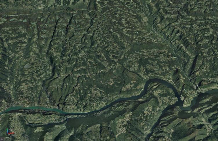 優(yōu)點(diǎn):數(shù)據(jù)獲取成本低,場(chǎng)景編譯整合工作量小,能夠充分利用已有的數(shù)字高程模型(DEM)和數(shù)字正射影像(DOM)成果快速搭建實(shí)景三維場(chǎng)景,山體、地形等立體感表現(xiàn)很好。