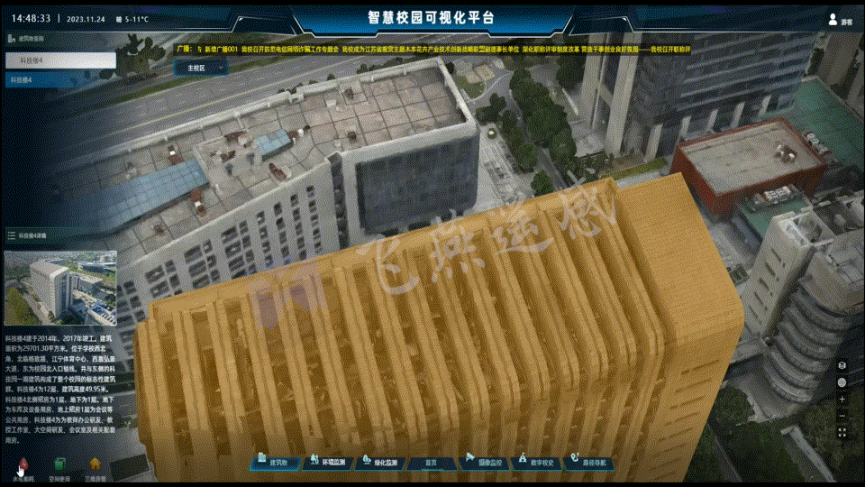 依托實(shí)景三維技術(shù),推動(dòng)業(yè)務(wù)場(chǎng)景實(shí)景化呈現(xiàn),構(gòu)建可觀測(cè)、可量化的智慧場(chǎng)景,強(qiáng)化實(shí)景感知能力與沉浸式交互體驗(yàn)。系統(tǒng)深度貼合校園實(shí)際環(huán)境,精準(zhǔn)洞察校園動(dòng)態(tài),支持校園建筑單體化檢索、實(shí)時(shí)人流熱力監(jiān)控、地下管網(wǎng)三維可視化及校史變遷動(dòng)態(tài)展示等多元應(yīng)用場(chǎng)景。通過(guò)空間信息與業(yè)務(wù)數(shù)據(jù)的深度融合,為校園管理提供可視化決策依據(jù),顯著提升數(shù)字校園的綜合管理效能與應(yīng)急指揮水平。