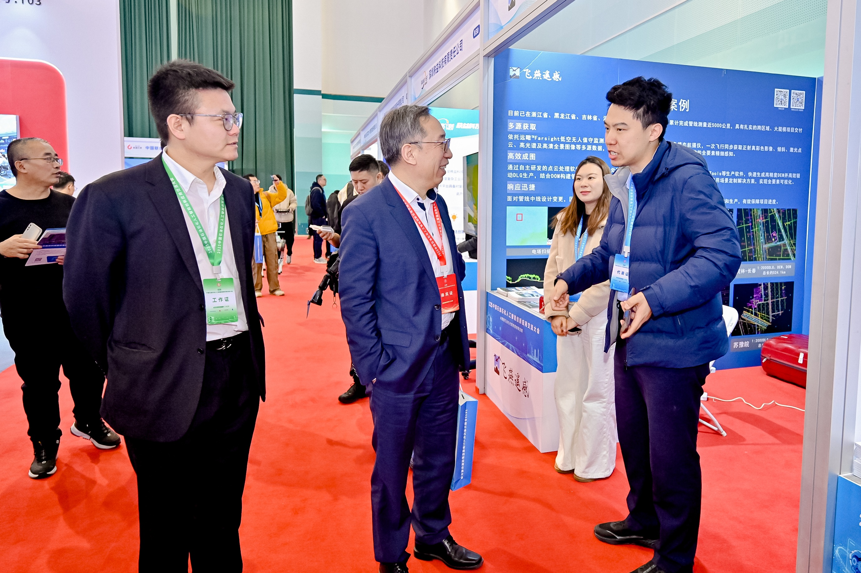 在展臺與報告廳內(nèi),飛燕遙感與多位行業(yè)專家及企業(yè)代表就“智慧轉型呼喚端到端解決方案”的技術路徑展開深度探討,共同交流分享石油石化企業(yè)數(shù)智化經(jīng)驗,探索行業(yè)數(shù)智化新路徑。截至目前,公司近年來的數(shù)據(jù)覆蓋面積已超過160萬平方公里,累計形成的時空數(shù)據(jù)資產(chǎn)更達300萬平方公里。從長春 - 石家莊天然氣管道工程的大范圍高效勘察,到泰順支線天然氣管道工程的復雜山區(qū)精準測繪,再到蘇豫皖干線項目的 “有人機 + 無人機” 協(xié)同作業(yè),飛燕遙感已成功交付累計約 5000 公里長輸管線航攝與探測項目,以“快速響應、攻堅克難、精益求精”的服務理念贏得客戶高度評價。