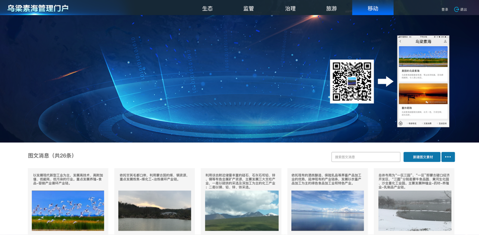 以文字、圖片、航攝影像的形式,對烏梁素海的地理環(huán)境、歷史樣貌、區(qū)域內(nèi)珍惜物種等信息進行宣傳展示,對生態(tài)環(huán)保的概念進行推廣普及。