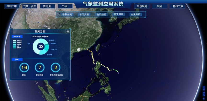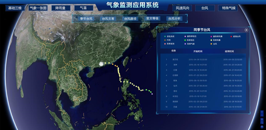 通過三維GIS技術,結合氣象數(shù)據(jù)、區(qū)域地形、河網(wǎng)等信息,構建氣象監(jiān)測預警系統(tǒng)?;跉庀笠蛩貏討B(tài)分析,科學預測區(qū)域內(nèi)水域、水利受影響范圍及程度。針對極端天氣,例如臺風,系統(tǒng)會錄入臺風的運動軌跡與時間信息,預測臺風登陸的時間地點,適時發(fā)出預警信息。
