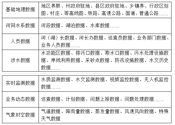 數(shù)據(jù)層是平臺需要的數(shù)據(jù)類型,主要包括基礎地理數(shù)據(jù)、河網(wǎng)水系數(shù)據(jù)、人員數(shù)據(jù)、涉水數(shù)據(jù)、實時監(jiān)測數(shù)據(jù)、業(yè)務動態(tài)數(shù)據(jù)、氣象時空數(shù)據(jù)等。